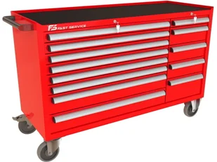 Wózek warsztatowy MEGA z 13 szufladami PM-212-21 13 szuflad na stalowych teleskopowych prowadnicach kulkowych z pełnym wysuwem wysuw szuflad 97 % odciążenie statyczne jednej szuflady do 60 kg centralna blokada zamykająca wszystkie szuflady po przekręceniu kluczyka centralny zamek blokujący z dwoma kluczami w komplecie w systemie Master Key blokada zapobiegająca wysunięciu więcej niż jednej szuflady dno każdej szuflady wyłożone gumową matą tłumiącą ogólnego przeznaczenia o grubości 2,0 mm blat wózka wyłożony tłumiącą matą gumową benzyno olejo odporną o grubości 2,0 mm przykręcany aluminiowy, anodowany i satynowany uchwyt szuflady z zabezpieczeniem bocznych krawędzi wkładką z tworzywa konstrukcja szafki wykonana z blachy stalowej o grubości 1,5 mm wzmocnienia podstawy kół wykonane z blachy stalowej o grubości 2,0 mm 4 koła o średnicy 160 mm Colson Performa 2 stałe + dwa obrotowe w tym jedno z hamulcem opona koła wykonana z niebrudzącej syntetycznej gumy szarej, odpornej na smary benzyny ługi produkt wyposażony w solidny boczy uchwyt pomocny przy manewrowaniu obciążonym wózkiem Wymiary użytkowe szuflad: 6 x szuflada niska 70 szeroka wysokość czoła szuflady 66 mm wysokość wewnętrzna użytkowa 56 mm szerokość wewnętrzna użytkowa 966 mm głębokość wewnętrzna użytkowa 408 mm 2 x szuflada średnia 140 szeroka wysokość czoła szuflady 136 mm wysokość wewnętrzna użytkowa 119 mm szerokość wewnętrzna użytkowa 966 mm głębokość wewnętrzna użytkowa 408 mm 1 x szuflada niska 70 wąska wysokość czoła szuflady 66 mm wysokość wewnętrzna użytkowa 56 mm szerokość wewnętrzna użytkowa 368 mm głębokość wewnętrzna użytkowa 408 mm 3 x szuflada średnia 140 wąska wysokość czoła szuflady 136 mm wysokość wewnętrzna użytkowa 119 mm szerokość wewnętrzna użytkowa 368 mm głębokość wewnętrzna użytkowa 408 mm 1 x szuflada wysoka 210 wąska wysokość czoła szuflady 206 mm wysokość wewnętrzna użytkowa 197 mm szerokość wewnętrzna użytkowa 966 mm głębokość wewnętrzna użytkowa 408 mm dokładne wymiary w galerii zdjęć Waga wózka 196,5 kg Wyposażenie opcjonalne (dodatkowo płatne): blat wózka wykonany ze sklejki o gr. 40 mm przestawne podziałki / p
