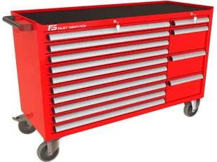 Wózek warsztatowy MEGA z 14 szufladami PM-210-18 14 szuflad na stalowych teleskopowych prowadnicach kulkowych z pełnym wysuwem wysuw szuflad 97 % odciążenie statyczne jednej szuflady do 60 kg centralna blokada zamykająca wszystkie szuflady po przekręceniu kluczyka centralny zamek blokujący z dwoma kluczami w komplecie w systemie Master Key blokada zapobiegająca wysunięciu więcej niż jednej szuflady dno każdej szuflady wyłożone gumową matą tłumiącą ogólnego przeznaczenia o grubości 2,0 mm blat wózka wyłożony tłumiącą matą gumową benzyno olejo odporną o grubości 2,0 mm przykręcany aluminiowy, anodowany i satynowany uchwyt szuflady z zabezpieczeniem bocznych krawędzi wkładką z tworzywa konstrukcja szafki wykonana z blachy stalowej o grubości 1,5 mm wzmocnienia podstawy kół wykonane z blachy stalowej o grubości 2,0 mm 4 koła o średnicy 160 mm Colson Performa 2 stałe + dwa obrotowe w tym jedno z hamulcem opona koła wykonana z niebrudzącej syntetycznej gumy szarej, odpornej na smary benzyny ługi produkt wyposażony w solidny boczy uchwyt pomocny przy manewrowaniu obciążonym wózkiem Wymiary użytkowe szuflad: 10 x szuflada niska 70 szeroka wysokość czoła szuflady 66 mm wysokość wewnętrzna użytkowa 56 mm szerokość wewnętrzna użytkowa 966 mm głębokość wewnętrzna użytkowa 408 mm 1 x szuflada niska 70 wąska wysokość czoła szuflady 66 mm wysokość wewnętrzna użytkowa 56 mm szerokość wewnętrzna użytkowa 368 mm głębokość wewnętrzna użytkowa 408 mm 3 x szuflada wysoka 210 wąska wysokość czoła szuflady 206 mm wysokość wewnętrzna użytkowa 197 mm szerokość wewnętrzna użytkowa 966 mm głębokość wewnętrzna użytkowa 408 mm dokładne wymiary w galerii zdjęć Waga wózka 208 kg Wyposażenie opcjonalne (dodatkowo płatne): blat wózka wykonany ze sklejki o gr. 40 mm przestawne podziałki / p