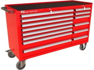 Wózek warsztatowy MEGA z 14 szufladami PM-212-14 14 szuflad na stalowych teleskopowych prowadnicach kulkowych z pełnym wysuwem wysuw szuflad 97 % odciążenie statyczne jednej szuflady do 60 kg centralna blokada zamykająca wszystkie szuflady po przekręceniu kluczyka centralny zamek blokujący z dwoma kluczami w komplecie w systemie Master Key blokada zapobiegająca wysunięciu więcej niż jednej szuflady dno każdej szuflady wyłożone gumową matą tłumiącą ogólnego przeznaczenia o grubości 2,0 mm blat wózka wyłożony tłumiącą matą gumową benzyno olejo odporną o grubości 2,0 mm przykręcany aluminiowy, anodowany i satynowany uchwyt szuflady z zabezpieczeniem bocznych krawędzi wkładką z tworzywa konstrukcja szafki wykonana z blachy stalowej o grubości 1,5 mm wzmocnienia podstawy kół wykonane z blachy stalowej o grubości 2,0 mm 4 koła o średnicy 160 mm Colson Performa 2 stałe + dwa obrotowe w tym jedno z hamulcem opona koła wykonana z niebrudzącej syntetycznej gumy szarej, odpornej na smary benzyny ługi produkt wyposażony w solidny boczy uchwyt pomocny przy manewrowaniu obciążonym wózkiem Wymiary użytkowe szuflad: 6 x szuflada niska 70 szeroka wysokość czoła szuflady 66 mm wysokość wewnętrzna użytkowa 56 mm szerokość wewnętrzna użytkowa 966 mm głębokość wewnętrzna użytkowa 408 mm 2 x szuflada średnia 140 szeroka wysokość czoła szuflady 136 mm wysokość wewnętrzna użytkowa 119 mm szerokość wewnętrzna użytkowa 966 mm głębokość wewnętrzna użytkowa 408 mm 2 x szuflada niska 70 wąska wysokość czoła szuflady 66 mm wysokość wewnętrzna użytkowa 56 mm szerokość wewnętrzna użytkowa 368 mm głębokość wewnętrzna użytkowa 408 mm 4 x szuflada średnia 140 wąska wysokość czoła szuflady 136 mm wysokość wewnętrzna użytkowa 119 mm szerokość wewnętrzna użytkowa 368 mm głębokość wewnętrzna użytkowa 408 mm dokładne wymiary w galerii zdjęć Waga wózka 200 kg Wyposażenie opcjonalne (dodatkowo płatne): blat wózka wykonany ze sklejki o gr. 40 mm przestawne podziałki / p