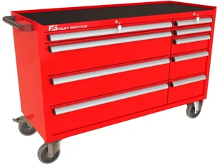 Wózek warsztatowy MEGA z 9 szufladami PM-218-22 9 szuflad na stalowych teleskopowych prowadnicach kulkowych z pełnym wysuwem wysuw szuflad 97 % odciążenie statyczne jednej szuflady do 60 kg centralna blokada zamykająca wszystkie szuflady po przekręceniu kluczyka centralny zamek blokujący z dwoma kluczami w komplecie w systemie Master Key blokada zapobiegająca wysunięciu więcej niż jednej szuflady dno każdej szuflady wyłożone gumową matą tłumiącą ogólnego przeznaczenia o grubości 2,0 mm blat wózka wyłożony tłumiącą matą gumową benzyno olejo odporną o grubości 2,0 mm przykręcany aluminiowy, anodowany i satynowany uchwyt szuflady z zabezpieczeniem bocznych krawędzi wkładką z tworzywa konstrukcja szafki wykonana z blachy stalowej o grubości 1,5 mm wzmocnienia podstawy kół wykonane z blachy stalowej o grubości 2,0 mm 4 koła o średnicy 160 mm Colson Performa 2 stałe + dwa obrotowe w tym jedno z hamulcem opona koła wykonana z niebrudzącej syntetycznej gumy szarej, odpornej na smary benzyny ługi produkt wyposażony w solidny boczy uchwyt pomocny przy manewrowaniu obciążonym wózkiem Wymiary użytkowe szuflad: 1 x szuflada niska 70 szeroka wysokość czoła szuflady 66 mm wysokość wewnętrzna użytkowa 56 mm szerokość wewnętrzna użytkowa 966 mm głębokość wewnętrzna użytkowa 408 mm 3 x szuflada wysoka 210 szeroka wysokość czoła szuflady 206 mm wysokość wewnętrzna użytkowa 197 mm szerokość wewnętrzna użytkowa 966 mm głębokość wewnętrzna użytkowa 408 mm 2 x szuflada niska 70 wąska wysokość czoła szuflady 66 mm wysokość wewnętrzna użytkowa 56 mm szerokość wewnętrzna użytkowa 368 mm głębokość wewnętrzna użytkowa 408 mm 1 x szuflada średnia 140 wąska wysokość czoła szuflady 136 mm wysokość wewnętrzna użytkowa 119 mm szerokość wewnętrzna użytkowa 368 mm głębokość wewnętrzna użytkowa 408 mm 2 x szuflada wysoka 210 wąska wysokość czoła szuflady 206 mm wysokość wewnętrzna użytkowa 197 mm szerokość wewnętrzna użytkowa 966 mm głębokość wewnętrzna użytkowa 408 mm dokładne wymiary w galerii zdjęć Waga wózka 168 kg Wyposażenie opcjonalne (dodatkowo płatne): blat wózka wykonany ze sklejki o gr. 40 mm przestawne podziałki / p