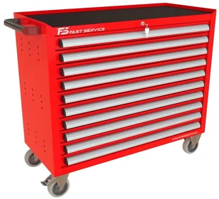 Wózek warsztatowy TRUCK z 10 szufladami PT-210 10 szuflad na stalowych teleskopowych prowadnicach kulkowych z pełnym wysuwem wysuw szuflad 97 % odciążenie statyczne jednej szuflady do 60 kg centralna blokada zamykająca wszystkie szuflady po przekręceniu kluczyka centralny zamek blokujący z dwoma kluczami w komplecie w systemie Master Key dno każdej szuflady wyłożone gumową matą tłumiącą ogólnego przeznaczenia o grubości 2,0 mm blat wózka wyłożony tłumiącą matą gumową benzyno olejo odporną o grubości 2,0 mm przykręcany aluminiowy, anodowany i satynowany uchwyt szuflady z zabezpieczeniem bocznych krawędzi wkładką z tworzywa konstrukcja szafki wykonana z blachy stalowej o grubości 1 mm wzmocnienia podstawy kół wykonane z blachy stalowej o grubości 2,0 mm 4 koła o średnicy 125 mm Colson Performa 2 stałe + dwa obrotowe w tym jedno z hamulcem opona koła wykonana z niebrudzącej syntetycznej gumy szarej, odpornej na smary benzyny ługi boki szafki posiadają perforację przystosowaną do zamontowania zawieszek na narzędzia produkt wyposażony w solidny boczy uchwyt pomocny przy manewrowaniu obciążonym wózkiem Wymiary użytkowe szuflad: 10 x szuflada niska 70 szeroka wysokość czoła szuflady 66 mm wysokość wewnętrzna użytkowa 56 mm szerokość wewnętrzna użytkowa 966 mm głębokość wewnętrzna użytkowa 408 mm dokładne wymiary w galerii zdjęć Waga wózka 132 kg Wyposażenie opcjonalne (dodatkowo płatne): blokada zapobiegająca wysunięciu więcej niż jednej szuflady blat wózka wykonany ze sklejki o gr. 40 mm przestawne podziałki / p