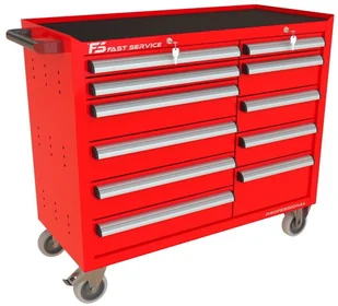 Wózek warsztatowy TRUCK z 11 szufladami PT-214-21 11 szuflad na stalowych teleskopowych prowadnicach kulkowych z pełnym wysuwem wysuw szuflad 97 % odciążenie statyczne jednej szuflady do 60 kg centralna blokada zamykająca wszystkie szuflady po przekręceniu kluczyka centralny zamek blokujący z dwoma kluczami w komplecie w systemie Master Key dno każdej szuflady wyłożone gumową matą tłumiącą ogólnego przeznaczenia o grubości 2,0 mm blat wózka wyłożony tłumiącą matą gumową benzyno olejo odporną o grubości 2,0 mm przykręcany aluminiowy, anodowany i satynowany uchwyt szuflady z zabezpieczeniem bocznych krawędzi wkładką z tworzywa konstrukcja szafki wykonana z blachy stalowej o grubości 1 mm wzmocnienia podstawy kół wykonane z blachy stalowej o grubości 2,0 mm 4 koła o średnicy 125 mm Colson Performa 2 stałe + dwa obrotowe w tym jedno z hamulcem opona koła wykonana z niebrudzącej syntetycznej gumy szarej, odpornej na smary benzyny ługi boki szafki posiadają perforację przystosowaną do zamontowania zawieszek na narzędzia produkt wyposażony w solidny boczy uchwyt pomocny przy manewrowaniu obciążonym wózkiem możliwość pomalowania w dowolnym podstawowym kolorze palety RAL (w cenie) Wymiary użytkowe szuflad: 2 x szuflada niska 70 standard wysokość czoła szuflady 66 mm wysokość wewnętrzna użytkowa 56 mm szerokość wewnętrzna użytkowa 558 mm głębokość wewnętrzna użytkowa 408 mm 1 x szuflada niska 70 wąska wysokość czoła szuflady 66 mm wysokość wewnętrzna użytkowa 56 mm szerokość wewnętrzna użytkowa 368 mm głębokość wewnętrzna użytkowa 408 mm 4 x szuflada średnia 140 standard wysokość czoła szuflady 136 mm wysokość wewnętrzna użytkowa 119 mm szerokość wewnętrzna użytkowa 558 mm głębokość wewnętrzna użytkowa 408 mm 3 x szuflada średnia 140 wąska wysokość czoła szuflady 136 mm wysokość wewnętrzna użytkowa 119 mm szerokość wewnętrzna użytkowa 368 mm głębokość wewnętrzna użytkowa 408 mm 1 x szuflada wysoka 210 wąska wysokość czoła szuflady 206 mm wysokość wewnętrzna użytkowa 197 mm szerokość wewnętrzna użytkowa 966 mm głębokość wewnętrzna użytkowa 408 mm dokładne wymiary w galerii zdjęć Waga wózka 114,5 kg Wyposażenie opcjonalne (dodatkowo płatne): blokada zapobiegająca wysunięciu więcej niż jednej szuflady blat wózka wykonany ze sklejki o gr. 40 mm przestawne podziałki / p