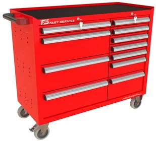 Wózek warsztatowy TRUCK z 11 szufladami PT-218-19 11 szuflad na stalowych teleskopowych prowadnicach kulkowych z pełnym wysuwem wysuw szuflad 97 % odciążenie statyczne jednej szuflady do 60 kg centralna blokada zamykająca wszystkie szuflady po przekręceniu kluczyka centralny zamek blokujący z dwoma kluczami w komplecie w systemie Master Key dno każdej szuflady wyłożone gumową matą tłumiącą ogólnego przeznaczenia o grubości 2,0 mm blat wózka wyłożony tłumiącą matą gumową benzyno olejo odporną o grubości 2,0 mm przykręcany aluminiowy, anodowany i satynowany uchwyt szuflady z zabezpieczeniem bocznych krawędzi wkładką z tworzywa konstrukcja szafki wykonana z blachy stalowej o grubości 1 mm wzmocnienia podstawy kół wykonane z blachy stalowej o grubości 2,0 mm 4 koła o średnicy 125 mm Colson Performa 2 stałe + dwa obrotowe w tym jedno z hamulcem opona koła wykonana z niebrudzącej syntetycznej gumy szarej, odpornej na smary benzyny ługi boki szafki posiadają perforację przystosowaną do zamontowania zawieszek na narzędzia produkt wyposażony w solidny boczy uchwyt pomocny przy manewrowaniu obciążonym wózkiem możliwość pomalowania w dowolnym podstawowym kolorze palety RAL (w cenie) Wymiary użytkowe szuflad: 1 x szuflada niska 70 standard wysokość czoła szuflady 66 mm wysokość wewnętrzna użytkowa 56 mm szerokość wewnętrzna użytkowa 558 mm głębokość wewnętrzna użytkowa 408 mm 5 x szuflada niska 70 wąska wysokość czoła szuflady 66 mm wysokość wewnętrzna użytkowa 56 mm szerokość wewnętrzna użytkowa 368 mm głębokość wewnętrzna użytkowa 408 mm 1 x szuflada średnia 140 wąska wysokość czoła szuflady 136 mm wysokość wewnętrzna użytkowa 119 mm szerokość wewnętrzna użytkowa 368 mm głębokość wewnętrzna użytkowa 408 mm 3 x szuflada wysoka 210 standard wysokość czoła szuflady 206 mm wysokość wewnętrzna użytkowa 197 mm szerokość wewnętrzna użytkowa 558 mm głębokość wewnętrzna użytkowa 408 mm 1 x szuflada wysoka 210 wąska wysokość czoła szuflady 206 mm wysokość wewnętrzna użytkowa 197 mm szerokość wewnętrzna użytkowa 966 mm głębokość wewnętrzna użytkowa 408 mm dokładne wymiary w galerii zdjęć Waga wózka 111,5 kg Wyposażenie opcjonalne (dodatkowo płatne): blokada zapobiegająca wysunięciu więcej niż jednej szuflady blat wózka wykonany ze sklejki o gr. 40 mm przestawne podziałki / p