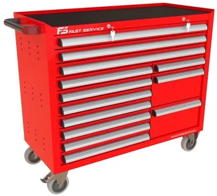 Wózek warsztatowy TRUCK z 13 szufladami PT-270-75 13 szuflad na stalowych teleskopowych prowadnicach kulkowych z pełnym wysuwem wysuw szuflad 97 % odciążenie statyczne jednej szuflady do 60 kg centralna blokada zamykająca wszystkie szuflady po przekręceniu kluczyka centralny zamek blokujący z dwoma kluczami w komplecie w systemie Master Key dno każdej szuflady wyłożone gumową matą tłumiącą ogólnego przeznaczenia o grubości 2,0 mm blat wózka wyłożony tłumiącą matą gumową benzyno olejo odporną o grubości 2,0 mm przykręcany aluminiowy, anodowany i satynowany uchwyt szuflady z zabezpieczeniem bocznych krawędzi wkładką z tworzywa konstrukcja szafki wykonana z blachy stalowej o grubości 1 mm wzmocnienia podstawy kół wykonane z blachy stalowej o grubości 2,0 mm 4 koła o średnicy 125 mm Colson Performa 2 stałe + dwa obrotowe w tym jedno z hamulcem opona koła wykonana z niebrudzącej syntetycznej gumy szarej, odpornej na smary benzyny ługi boki szafki posiadają perforację przystosowaną do zamontowania zawieszek na narzędzia produkt wyposażony w solidny boczy uchwyt pomocny przy manewrowaniu obciążonym wózkiem możliwość pomalowania w dowolnym podstawowym kolorze palety RAL (w cenie) Wymiary użytkowe szuflad: 3 x szuflada niska 70 szeroka wysokość czoła szuflady 66 mm wysokość wewnętrzna użytkowa 56 mm szerokość wewnętrzna użytkowa 966 mm głębokość wewnętrzna użytkowa 408 mm 7 x szuflada niska 70 standard wysokość czoła szuflady 66 mm wysokość wewnętrzna użytkowa 56 mm szerokość wewnętrzna użytkowa 558 mm głębokość wewnętrzna użytkowa 408 mm 1 x szuflada niska 70 wąska wysokość czoła szuflady 66 mm wysokość wewnętrzna użytkowa 56 mm szerokość wewnętrzna użytkowa 368 mm głębokość wewnętrzna użytkowa 408 mm 2 x szuflada wysoka 210 wąska wysokość czoła szuflady 206 mm wysokość wewnętrzna użytkowa 197 mm szerokość wewnętrzna użytkowa 966 mm głębokość wewnętrzna użytkowa 408 mm dokładne wymiary w galerii zdjęć Waga wózka 133,5 kg Wyposażenie opcjonalne (dodatkowo płatne): blokada zapobiegająca wysunięciu więcej niż jednej szuflady blat wózka wykonany ze sklejki o gr. 40 mm przestawne podziałki / p
