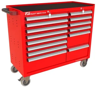 Wózek warsztatowy TRUCK z 14 szufladami PT-216-17 14 szuflad na stalowych teleskopowych prowadnicach kulkowych z pełnym wysuwem wysuw szuflad 97 % odciążenie statyczne jednej szuflady do 60 kg centralna blokada zamykająca wszystkie szuflady po przekręceniu kluczyka centralny zamek blokujący z dwoma kluczami w komplecie w systemie Master Key dno każdej szuflady wyłożone gumową matą tłumiącą ogólnego przeznaczenia o grubości 2,0 mm blat wózka wyłożony tłumiącą matą gumową benzyno olejo odporną o grubości 2,0 mm przykręcany aluminiowy, anodowany i satynowany uchwyt szuflady z zabezpieczeniem bocznych krawędzi wkładką z tworzywa konstrukcja szafki wykonana z blachy stalowej o grubości 1 mm wzmocnienia podstawy kół wykonane z blachy stalowej o grubości 2,0 mm 4 koła o średnicy 125 mm Colson Performa 2 stałe + dwa obrotowe w tym jedno z hamulcem opona koła wykonana z niebrudzącej syntetycznej gumy szarej, odpornej na smary benzyny ługi boki szafki posiadają perforację przystosowaną do zamontowania zawieszek na narzędzia produkt wyposażony w solidny boczy uchwyt pomocny przy manewrowaniu obciążonym wózkiem możliwość pomalowania w dowolnym podstawowym kolorze palety RAL (w cenie) Wymiary użytkowe szuflad: 7 x szuflada niska 70 standard wysokość czoła szuflady 66 mm wysokość wewnętrzna użytkowa 56 mm szerokość wewnętrzna użytkowa 558 mm głębokość wewnętrzna użytkowa 408 mm 4 x szuflada niska 70 wąska wysokość czoła szuflady 66 mm wysokość wewnętrzna użytkowa 56 mm szerokość wewnętrzna użytkowa 368 mm głębokość wewnętrzna użytkowa 408 mm 1 x szuflada wysoka 210 standard wysokość czoła szuflady 206 mm wysokość wewnętrzna użytkowa 197 mm szerokość wewnętrzna użytkowa 558 mm głębokość wewnętrzna użytkowa 408 mm 2 x szuflada wysoka 210 wąska wysokość czoła szuflady 206 mm wysokość wewnętrzna użytkowa 197 mm szerokość wewnętrzna użytkowa 966 mm głębokość wewnętrzna użytkowa 408 mm dokładne wymiary w galerii zdjęć Waga wózka 128 kg Wyposażenie opcjonalne (dodatkowo płatne): blokada zapobiegająca wysunięciu więcej niż jednej szuflady blat wózka wykonany ze sklejki o gr. 40 mm przestawne podziałki / p