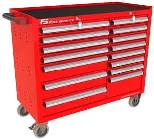 Wózek warsztatowy TRUCK z 15 szufladami PT-213-16 15 szuflad na stalowych teleskopowych prowadnicach kulkowych z pełnym wysuwem wysuw szuflad 97 % odciążenie statyczne jednej szuflady do 60 kg centralna blokada zamykająca wszystkie szuflady po przekręceniu kluczyka centralny zamek blokujący z dwoma kluczami w komplecie w systemie Master Key dno każdej szuflady wyłożone gumową matą tłumiącą ogólnego przeznaczenia o grubości 2,0 mm blat wózka wyłożony tłumiącą matą gumową benzyno olejo odporną o grubości 2,0 mm przykręcany aluminiowy, anodowany i satynowany uchwyt szuflady z zabezpieczeniem bocznych krawędzi wkładką z tworzywa konstrukcja szafki wykonana z blachy stalowej o grubości 1 mm wzmocnienia podstawy kół wykonane z blachy stalowej o grubości 2,0 mm 4 koła o średnicy 125 mm Colson Performa 2 stałe + dwa obrotowe w tym jedno z hamulcem opona koła wykonana z niebrudzącej syntetycznej gumy szarej, odpornej na smary benzyny ługi boki szafki posiadają perforację przystosowaną do zamontowania zawieszek na narzędzia produkt wyposażony w solidny boczy uchwyt pomocny przy manewrowaniu obciążonym wózkiem możliwość pomalowania w dowolnym podstawowym kolorze palety RAL (w cenie) Wymiary użytkowe szuflad: 4 x szuflada niska 70 standard wysokość czoła szuflady 66 mm wysokość wewnętrzna użytkowa 56 mm szerokość wewnętrzna użytkowa 558 mm głębokość wewnętrzna użytkowa 408 mm 7 x szuflada niska 70 wąska wysokość czoła szuflady 66 mm wysokość wewnętrzna użytkowa 56 mm szerokość wewnętrzna użytkowa 368 mm głębokość wewnętrzna użytkowa 408 mm 3 x szuflada średnia 140 standard wysokość czoła szuflady 136 mm wysokość wewnętrzna użytkowa 119 mm szerokość wewnętrzna użytkowa 558 mm głębokość wewnętrzna użytkowa 408 mm 1 x szuflada wysoka 210 wąska wysokość czoła szuflady 206 mm wysokość wewnętrzna użytkowa 197 mm szerokość wewnętrzna użytkowa 966 mm głębokość wewnętrzna użytkowa 408 mm dokładne wymiary w galerii zdjęć Waga wózka 130 kg Wyposażenie opcjonalne (dodatkowo płatne): blokada zapobiegająca wysunięciu więcej niż jednej szuflady blat wózka wykonany ze sklejki o gr. 40 mm przestawne podziałki / p
