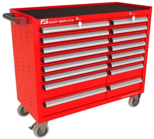 Wózek warsztatowy TRUCK z 16 szufladami PT-212-12 16 szuflad na stalowych teleskopowych prowadnicach kulkowych z pełnym wysuwem wysuw szuflad 97 % odciążenie statyczne jednej szuflady do 60 kg centralna blokada zamykająca wszystkie szuflady po przekręceniu kluczyka centralny zamek blokujący z dwoma kluczami w komplecie w systemie Master Key dno każdej szuflady wyłożone gumową matą tłumiącą ogólnego przeznaczenia o grubości 2,0 mm blat wózka wyłożony tłumiącą matą gumową benzyno olejo odporną o grubości 2,0 mm przykręcany aluminiowy, anodowany i satynowany uchwyt szuflady z zabezpieczeniem bocznych krawędzi wkładką z tworzywa konstrukcja szafki wykonana z blachy stalowej o grubości 1 mm wzmocnienia podstawy kół wykonane z blachy stalowej o grubości 2,0 mm 4 koła o średnicy 125 mm Colson Performa 2 stałe + dwa obrotowe w tym jedno z hamulcem opona koła wykonana z niebrudzącej syntetycznej gumy szarej, odpornej na smary benzyny ługi boki szafki posiadają perforację przystosowaną do zamontowania zawieszek na narzędzia produkt wyposażony w solidny boczy uchwyt pomocny przy manewrowaniu obciążonym wózkiem możliwość pomalowania w dowolnym podstawowym kolorze palety RAL (w cenie) Wymiary użytkowe szuflad: 6 x szuflada niska 70 standard wysokość czoła szuflady 66 mm wysokość wewnętrzna użytkowa 56 mm szerokość wewnętrzna użytkowa 558 mm głębokość wewnętrzna użytkowa 408 mm 6 x szuflada niska 70 wąska wysokość czoła szuflady 66 mm wysokość wewnętrzna użytkowa 56 mm szerokość wewnętrzna użytkowa 368 mm głębokość wewnętrzna użytkowa 408 mm 2 x szuflada średnia 140 standard wysokość czoła szuflady 136 mm wysokość wewnętrzna użytkowa 119 mm szerokość wewnętrzna użytkowa 558 mm głębokość wewnętrzna użytkowa 408 mm 2 x szuflada średnia 140 wąska wysokość czoła szuflady 136 mm wysokość wewnętrzna użytkowa 119 mm szerokość wewnętrzna użytkowa 368 mm głębokość wewnętrzna użytkowa 408 mm dokładne wymiary w galerii zdjęć Waga wózka 135 kg Wyposażenie opcjonalne (dodatkowo płatne): blokada zapobiegająca wysunięciu więcej niż jednej szuflady blat wózka wykonany ze sklejki o gr. 40 mm przestawne podziałki / p