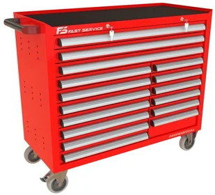 Wózek warsztatowy TRUCK z 16 szufladami PT-270-71 16 szuflad na stalowych teleskopowych prowadnicach kulkowych z pełnym wysuwem wysuw szuflad 97 % odciążenie statyczne jednej szuflady do 60 kg centralna blokada zamykająca wszystkie szuflady po przekręceniu kluczyka centralny zamek blokujący z dwoma kluczami w komplecie w systemie Master Key dno każdej szuflady wyłożone gumową matą tłumiącą ogólnego przeznaczenia o grubości 2,0 mm blat wózka wyłożony tłumiącą matą gumową benzyno olejo odporną o grubości 2,0 mm przykręcany aluminiowy, anodowany i satynowany uchwyt szuflady z zabezpieczeniem bocznych krawędzi wkładką z tworzywa konstrukcja szafki wykonana z blachy stalowej o grubości 1 mm wzmocnienia podstawy kół wykonane z blachy stalowej o grubości 2,0 mm 4 koła o średnicy 125 mm Colson Performa 2 stałe + dwa obrotowe w tym jedno z hamulcem opona koła wykonana z niebrudzącej syntetycznej gumy szarej, odpornej na smary benzyny ługi boki szafki posiadają perforację przystosowaną do zamontowania zawieszek na narzędzia produkt wyposażony w solidny boczy uchwyt pomocny przy manewrowaniu obciążonym wózkiem możliwość pomalowania w dowolnym podstawowym kolorze palety RAL (w cenie) Wymiary użytkowe szuflad: 3 x szuflada niska 70 szeroka wysokość czoła szuflady 66 mm wysokość wewnętrzna użytkowa 56 mm szerokość wewnętrzna użytkowa 966 mm głębokość wewnętrzna użytkowa 408 mm 7 x szuflada niska 70 standard wysokość czoła szuflady 66 mm wysokość wewnętrzna użytkowa 56 mm szerokość wewnętrzna użytkowa 558 mm głębokość wewnętrzna użytkowa 408 mm 5 x szuflada niska 70 wąska wysokość czoła szuflady 66 mm wysokość wewnętrzna użytkowa 56 mm szerokość wewnętrzna użytkowa 368 mm głębokość wewnętrzna użytkowa 408 mm 1 x szuflada średnia 140 wąska wysokość czoła szuflady 136 mm wysokość wewnętrzna użytkowa 119 mm szerokość wewnętrzna użytkowa 368 mm głębokość wewnętrzna użytkowa 408 mm dokładne wymiary w galerii zdjęć Waga wózka 144 kg Wyposażenie opcjonalne (dodatkowo płatne): blokada zapobiegająca wysunięciu więcej niż jednej szuflady blat wózka wykonany ze sklejki o gr. 40 mm przestawne podziałki / p