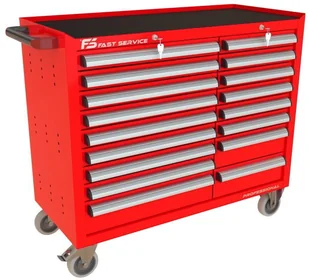 Wózek warsztatowy TRUCK z 17 szufladami PT-211-12 17 szuflad na stalowych teleskopowych prowadnicach kulkowych z pełnym wysuwem wysuw szuflad 97 % odciążenie statyczne jednej szuflady do 60 kg centralna blokada zamykająca wszystkie szuflady po przekręceniu kluczyka centralny zamek blokujący z dwoma kluczami w komplecie w systemie Master Key dno każdej szuflady wyłożone gumową matą tłumiącą ogólnego przeznaczenia o grubości 2,0 mm blat wózka wyłożony tłumiącą matą gumową benzyno olejo odporną o grubości 2,0 mm przykręcany aluminiowy, anodowany i satynowany uchwyt szuflady z zabezpieczeniem bocznych krawędzi wkładką z tworzywa konstrukcja szafki wykonana z blachy stalowej o grubości 1 mm wzmocnienia podstawy kół wykonane z blachy stalowej o grubości 2,0 mm 4 koła o średnicy 125 mm Colson Performa 2 stałe + dwa obrotowe w tym jedno z hamulcem opona koła wykonana z niebrudzącej syntetycznej gumy szarej, odpornej na smary benzyny ługi boki szafki posiadają perforację przystosowaną do zamontowania zawieszek na narzędzia produkt wyposażony w solidny boczy uchwyt pomocny przy manewrowaniu obciążonym wózkiem możliwość pomalowania w dowolnym podstawowym kolorze palety RAL (w cenie) Wymiary użytkowe szuflad: 8 x szuflada niska 70 standard wysokość czoła szuflady 66 mm wysokość wewnętrzna użytkowa 56 mm szerokość wewnętrzna użytkowa 558 mm głębokość wewnętrzna użytkowa 408 mm 6 x szuflada niska 70 wąska wysokość czoła szuflady 66 mm wysokość wewnętrzna użytkowa 56 mm szerokość wewnętrzna użytkowa 368 mm głębokość wewnętrzna użytkowa 408 mm 1 x szuflada średnia 140 standard wysokość czoła szuflady 136 mm wysokość wewnętrzna użytkowa 119 mm szerokość wewnętrzna użytkowa 558 mm głębokość wewnętrzna użytkowa 408 mm 2 x szuflada średnia 140 wąska wysokość czoła szuflady 136 mm wysokość wewnętrzna użytkowa 119 mm szerokość wewnętrzna użytkowa 368 mm głębokość wewnętrzna użytkowa 408 mm dokładne wymiary w galerii zdjęć Waga wózka 140 kg Wyposażenie opcjonalne (dodatkowo płatne): blokada zapobiegająca wysunięciu więcej niż jednej szuflady blat wózka wykonany ze sklejki o gr. 40 mm przestawne podziałki / p