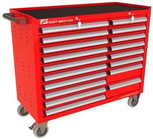 Wózek warsztatowy TRUCK z 18 szufladami PT-210-12 18 szuflad na stalowych teleskopowych prowadnicach kulkowych z pełnym wysuwem wysuw szuflad 97 % odciążenie statyczne jednej szuflady do 60 kg centralna blokada zamykająca wszystkie szuflady po przekręceniu kluczyka centralny zamek blokujący z dwoma kluczami w komplecie w systemie Master Key dno każdej szuflady wyłożone gumową matą tłumiącą ogólnego przeznaczenia o grubości 2,0 mm blat wózka wyłożony tłumiącą matą gumową benzyno olejo odporną o grubości 2,0 mm przykręcany aluminiowy, anodowany i satynowany uchwyt szuflady z zabezpieczeniem bocznych krawędzi wkładką z tworzywa konstrukcja szafki wykonana z blachy stalowej o grubości 1 mm wzmocnienia podstawy kół wykonane z blachy stalowej o grubości 2,0 mm 4 koła o średnicy 125 mm Colson Performa 2 stałe + dwa obrotowe w tym jedno z hamulcem opona koła wykonana z niebrudzącej syntetycznej gumy szarej, odpornej na smary benzyny ługi boki szafki posiadają perforację przystosowaną do zamontowania zawieszek na narzędzia produkt wyposażony w solidny boczy uchwyt pomocny przy manewrowaniu obciążonym wózkiem możliwość pomalowania w dowolnym podstawowym kolorze palety RAL (w cenie) Wymiary użytkowe szuflad: 10 x szuflada niska 70 standard wysokość czoła szuflady 66 mm wysokość wewnętrzna użytkowa 56 mm szerokość wewnętrzna użytkowa 558 mm głębokość wewnętrzna użytkowa 408 mm 6 x szuflada niska 70 wąska wysokość czoła szuflady 66 mm wysokość wewnętrzna użytkowa 56 mm szerokość wewnętrzna użytkowa 368 mm głębokość wewnętrzna użytkowa 408 mm 2 x szuflada średnia 140 wąska wysokość czoła szuflady 136 mm wysokość wewnętrzna użytkowa 119 mm szerokość wewnętrzna użytkowa 368 mm głębokość wewnętrzna użytkowa 408 mm dokładne wymiary w galerii zdjęć Waga wózka 145 kg Wyposażenie opcjonalne (dodatkowo płatne): blokada zapobiegająca wysunięciu więcej niż jednej szuflady blat wózka wykonany ze sklejki o gr. 40 mm przestawne podziałki / p