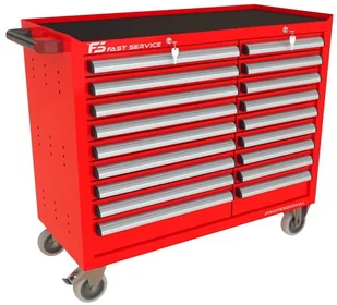 Wózek warsztatowy TRUCK z 18 szufladami PT-211-11 18 szuflad na stalowych teleskopowych prowadnicach kulkowych z pełnym wysuwem wysuw szuflad 97 % odciążenie statyczne jednej szuflady do 60 kg centralna blokada zamykająca wszystkie szuflady po przekręceniu kluczyka centralny zamek blokujący z dwoma kluczami w komplecie w systemie Master Key dno każdej szuflady wyłożone gumową matą tłumiącą ogólnego przeznaczenia o grubości 2,0 mm blat wózka wyłożony tłumiącą matą gumową benzyno olejo odporną o grubości 2,0 mm przykręcany aluminiowy, anodowany i satynowany uchwyt szuflady z zabezpieczeniem bocznych krawędzi wkładką z tworzywa konstrukcja szafki wykonana z blachy stalowej o grubości 1 mm wzmocnienia podstawy kół wykonane z blachy stalowej o grubości 2,0 mm 4 koła o średnicy 125 mm Colson Performa 2 stałe + dwa obrotowe w tym jedno z hamulcem opona koła wykonana z niebrudzącej syntetycznej gumy szarej, odpornej na smary benzyny ługi boki szafki posiadają perforację przystosowaną do zamontowania zawieszek na narzędzia produkt wyposażony w solidny boczy uchwyt pomocny przy manewrowaniu obciążonym wózkiem możliwość pomalowania w dowolnym podstawowym kolorze palety RAL (w cenie) Wymiary użytkowe szuflad: 8 x szuflada niska 70 standard wysokość czoła szuflady 66 mm wysokość wewnętrzna użytkowa 56 mm szerokość wewnętrzna użytkowa 558 mm głębokość wewnętrzna użytkowa 408 mm 8 x szuflada niska 70 wąska wysokość czoła szuflady 66 mm wysokość wewnętrzna użytkowa 56 mm szerokość wewnętrzna użytkowa 368 mm głębokość wewnętrzna użytkowa 408 mm 1 x szuflada średnia 140 standard wysokość czoła szuflady 136 mm wysokość wewnętrzna użytkowa 119 mm szerokość wewnętrzna użytkowa 558 mm głębokość wewnętrzna użytkowa 408 mm 1 x szuflada średnia 140 wąska wysokość czoła szuflady 136 mm wysokość wewnętrzna użytkowa 119 mm szerokość wewnętrzna użytkowa 368 mm głębokość wewnętrzna użytkowa 408 mm dokładne wymiary w galerii zdjęć Waga wózka 143,5 kg Wyposażenie opcjonalne (dodatkowo płatne): blokada zapobiegająca wysunięciu więcej niż jednej szuflady blat wózka wykonany ze sklejki o gr. 40 mm przestawne podziałki / p