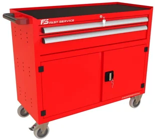Wózek warsztatowy TRUCK z 2 szufladami i drzwiami PT-231 2 szuflady na stalowych teleskopowych prowadnicach kulkowych z pełnym wysuwem wysuw szuflad 97 % odciążenie statyczne jednej szuflady do 60 kg centralna blokada zamykająca wszystkie szuflady po przekręceniu kluczyka centralny zamek blokujący z dwoma kluczami w komplecie w systemie Master Key dno każdej szuflady wyłożone gumową matą tłumiącą ogólnego przeznaczenia o grubości 2,0 mm blat wózka wyłożony tłumiącą matą gumową benzyno olejo odporną o grubości 2,0 mm przykręcany aluminiowy, anodowany i satynowany uchwyt szuflady z zabezpieczeniem bocznych krawędzi wkładką z tworzywa konstrukcja szafki wykonana z blachy stalowej o grubości 1 mm wzmocnienia podstawy kół wykonane z blachy stalowej o grubości 2,0 mm 4 koła o średnicy 125 mm Colson Performa 2 stałe + dwa obrotowe w tym jedno z hamulcem opona koła wykonana z niebrudzącej syntetycznej gumy szarej, odpornej na smary benzyny ługi boki szafki posiadają perforację przystosowaną do zamontowania zawieszek na narzędzia produkt wyposażony w solidny boczy uchwyt pomocny przy manewrowaniu obciążonym wózkiem pod szufladami komora zamykana podwójnymi drzwiami oraz dodatkowo zamkiem baskwilowym z dwoma kluczami w komplecie drzwi osadzone na zewnętrznych zawiasach Elesa Ganter z kątem otwarcia 180 stopni wygodny uchwyt profilowany na całej wysokości drzwiczek wewnątrz komory znajduje się przestawna co 30mm półka wyłożona tłumiącą matą gumową ogólnego przeznaczenia obciążenie statyczne półki do 40 kg Wymiary użytkowe szuflad: 1 x szuflada niska 70 szeroka wysokość czoła szuflady 66 mm wysokość wewnętrzna użytkowa 56 mm szerokość wewnętrzna użytkowa 966 mm głębokość wewnętrzna użytkowa 408 mm 1 x szuflada średnia 140 szeroka wysokość czoła szuflady 136 mm wysokość wewnętrzna użytkowa 119 mm szerokość wewnętrzna użytkowa 966 mm głębokość wewnętrzna użytkowa 408 mm Wymiary użytkowe komory pod szufladami: 1 x drzwiczki podwójne wysokość wewnętrzna światła drzwi 427 mm szerokość wewnętrzna światła drzwi 988 mm głębokość wewnętrzna użytkowa 450 mm dokładne wymiary w galerii zdjęć Waga wózka 74,5 kg Wyposażenie opcjonalne (dodatkowo płatne): blokada zapobiegająca wysunięciu więcej niż jednej szuflady blat wózka wykonany ze sklejki o gr. 40 mm przestawne podziałki / p