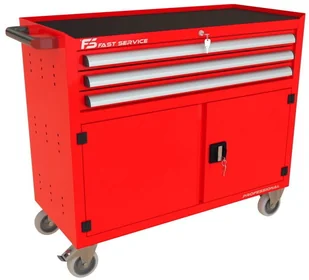 Wózek warsztatowy TRUCK z 3 szufladami i drzwiami PT-230 3 szuflady na stalowych teleskopowych prowadnicach kulkowych z pełnym wysuwem wysuw szuflad 97 % odciążenie statyczne jednej szuflady do 60 kg centralna blokada zamykająca wszystkie szuflady po przekręceniu kluczyka centralny zamek blokujący z dwoma kluczami w komplecie w systemie Master Key dno każdej szuflady wyłożone gumową matą tłumiącą ogólnego przeznaczenia o grubości 2,0 mm blat wózka wyłożony tłumiącą matą gumową benzyno olejo odporną o grubości 2,0 mm przykręcany aluminiowy, anodowany i satynowany uchwyt szuflady z zabezpieczeniem bocznych krawędzi wkładką z tworzywa konstrukcja szafki wykonana z blachy stalowej o grubości 1 mm wzmocnienia podstawy kół wykonane z blachy stalowej o grubości 2,0 mm 4 koła o średnicy 125 mm Colson Performa 2 stałe + dwa obrotowe w tym jedno z hamulcem opona koła wykonana z niebrudzącej syntetycznej gumy szarej, odpornej na smary benzyny ługi boki szafki posiadają perforację przystosowaną do zamontowania zawieszek na narzędzia produkt wyposażony w solidny boczy uchwyt pomocny przy manewrowaniu obciążonym wózkiem pod szufladami komora zamykana podwójnymi drzwiami oraz dodatkowo zamkiem baskwilowym z dwoma kluczami w komplecie drzwi osadzone na zewnętrznych zawiasach Elesa Ganter z kątem otwarcia 180 stopni wygodny uchwyt profilowany na całej wysokości drzwiczek wewnątrz komory znajduje się przestawna co 30mm półka wyłożona tłumiącą matą gumową ogólnego przeznaczenia obciążenie statyczne półki do 40 kg Wymiary użytkowe szuflad: 3 x szuflada niska 70 szeroka wysokość czoła szuflady 66 mm wysokość wewnętrzna użytkowa 56 mm szerokość wewnętrzna użytkowa 966 mm głębokość wewnętrzna użytkowa 408 mm Wymiary użytkowe komory pod szufladami: 1 x drzwiczki podwójne wysokość wewnętrzna światła drzwi 427 mm szerokość wewnętrzna światła drzwi 988 mm głębokość wewnętrzna użytkowa 450 mm dokładne wymiary w galerii zdjęć Waga wózka 82 kg Wyposażenie opcjonalne (dodatkowo płatne): blokada zapobiegająca wysunięciu więcej niż jednej szuflady blat wózka wykonany ze sklejki o gr. 40 mm przestawne podziałki / p