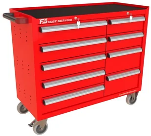 Wózek warsztatowy TRUCK z 9 szufladami PT-215-23 9 szuflad na stalowych teleskopowych prowadnicach kulkowych z pełnym wysuwem wysuw szuflad 97 % odciążenie statyczne jednej szuflady do 60 kg centralna blokada zamykająca wszystkie szuflady po przekręceniu kluczyka centralny zamek blokujący z dwoma kluczami w komplecie w systemie Master Key dno każdej szuflady wyłożone gumową matą tłumiącą ogólnego przeznaczenia o grubości 2,0 mm blat wózka wyłożony tłumiącą matą gumową benzyno olejo odporną o grubości 2,0 mm przykręcany aluminiowy, anodowany i satynowany uchwyt szuflady z zabezpieczeniem bocznych krawędzi wkładką z tworzywa konstrukcja szafki wykonana z blachy stalowej o grubości 1 mm wzmocnienia podstawy kół wykonane z blachy stalowej o grubości 2,0 mm 4 koła o średnicy 125 mm Colson Performa 2 stałe + dwa obrotowe w tym jedno z hamulcem opona koła wykonana z niebrudzącej syntetycznej gumy szarej, odpornej na smary benzyny ługi boki szafki posiadają perforację przystosowaną do zamontowania zawieszek na narzędzia produkt wyposażony w solidny boczy uchwyt pomocny przy manewrowaniu obciążonym wózkiem możliwość pomalowania w dowolnym podstawowym kolorze palety RAL (w cenie) Wymiary użytkowe szuflad: 5 x szuflada średnia 140 standard wysokość czoła szuflady 136 mm wysokość wewnętrzna użytkowa 119 mm szerokość wewnętrzna użytkowa 558 mm głębokość wewnętrzna użytkowa 408 mm 2 x szuflada średnia 140 wąska wysokość czoła szuflady 136 mm wysokość wewnętrzna użytkowa 119 mm szerokość wewnętrzna użytkowa 368 mm głębokość wewnętrzna użytkowa 408 mm 2 x szuflada wysoka 210 wąska wysokość czoła szuflady 206 mm wysokość wewnętrzna użytkowa 197 mm szerokość wewnętrzna użytkowa 966 mm głębokość wewnętrzna użytkowa 408 mm dokładne wymiary w galerii zdjęć Waga wózka 106 kg Wyposażenie opcjonalne (dodatkowo płatne): blokada zapobiegająca wysunięciu więcej niż jednej szuflady blat wózka wykonany ze sklejki o gr. 40 mm przestawne podziałki / p