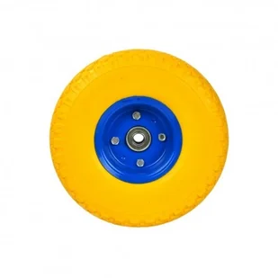 Koło do taczki pełne 3. 00-4 PU żółte, niebieska felga $55$56$57$58$59 $60 Pełne, poliuretanowe koło do wózka o maksymalnym obciążeniu do 135 kg. Wytrzymała metalowa felga, malowana proszkowo zapewnia podwyższoną stabilność. Całość wykonana z wysokiej jakości materiałów. Brak ośki w zestawie.