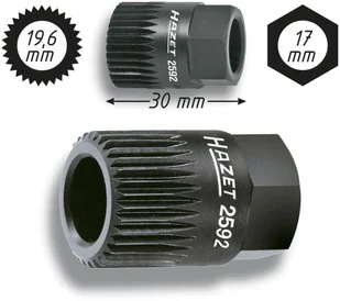 Wyposażenie: Adapter wielozębny $170 Zastosowanie: - Montaż lub demontażkoła rowkowego pasowego do pasa wieloklinowego wprądnicy samochodowej, - do np VALEO, BOSCH itd w samochodach markiVW, AUDI, ŠKODA i SEAT $171 Made in Germany $172 Rozmiar klucza: 196 $173 Długość całkowita: 30 mm $174 Napęd: Zewnętrzny sześciokąt 17 mm $175 Końcówka: Profil wielozębny $176 Masa netto: 004 kg