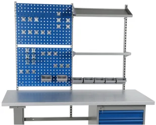 opakowania 30 różnych haczykówTablica narzędziowa nadaje się do użytku ze stołem warsztatowym o szerokości 2000mm. Biurko warsztatowe widoczne na zdjęciu nie wchodzi w skład zestawu. Można je kupić TUTAJ.