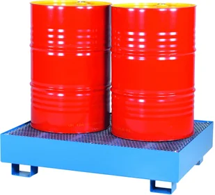 95 cm x 125 cm x 30 cm, Paleta (wanna) wychwytowa do bezpiecznego składowania dwóch ustawionych pionowo beczek. Wanna o pojemności 260 l. obsługiwana za pomocą wózka ręcznego, układarki lub wózka widłowego. . Wanna (paleta) wychwytowa stalowa, malowana proszkowo, ze zdejmowalnym ocynkowanym rusztem kratowym, służąca do składowania czterech beczek lub innych mniejszych pojemników z substancjami niebezpiecznymi. Stosowana do bezpiecznego magazynowania substancji niebezpiecznych oraz do zabezpieczenia przestrzeni roboczych podczas operacji z niebezpiecznymi płynami.