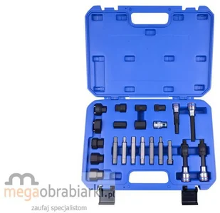 Do demontażu i montażu kół pasowych przy alternatorze. Do urządzeń marek: Bosch, Valeo, Magetic Marelii, Denso w samochodach VW, Audi, Citroen, Peugeot, Mercedes, Renault, BMW, Fiat, Ford, Toyota, itd. Zawartość:- 3 x końcówka do nasadek: 3/8"xM10x90 mm, 1/2"xT50x113 mm, 1/2"xM10x113 mm - 1 x końcówka SPLINE 1/2"xM10x110 mm - 3 x nasadka 33 zęby: 15 mm HEX x 19 mm, 15 mm HEX x 17,5 mm, 22 mm HEX- 2 x nakrętka HEX: 22x30 mm ( śr .12 mm ) , 17x35 mm ( śr.14,7 mm ) - 1 x 35x17 mm HEX czteropinowy- 1 x 38 mm adapter HEX trzypinowy- 1 x 28,6 mm xH28xH22x32 mm - 2 x nakrętka z łbem HEX: 28HxH19X35 mm, 28HxH21x36 mm - 1 x M10xH12 końcówka 64 mm - 6 x 10 mm końcówka głowicy chwytu 75 mm : T40,T50,M8,M10,H8,H10- 1 - 1/2" uchwyt do końcówek Karta produktu - 9da022
