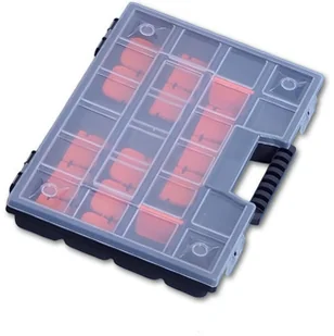 Przegrody mają możliwość regulacji długości, co pozwala dopasować wielkość przegródek do przechowywanych rzeczy. Dzięki przezroczystej pokrywie bez otwierania organizera można rozpoznać jego zawartość. Wygodna rączka oraz solidne zatrzaski do zamykania to kolejne atuty praktycznego organizera. Produkt został wykonany z wysokiej jakości materiałów, co zapewnia jego trwałość i wytrzymałość.