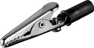 Zacisk krokodylkowy ze śrubką, maksymalnie 50V, kolor czarny. Do używania TYLKO przez hobbystów, nie nadaje się do instalacji profesjonalnych.