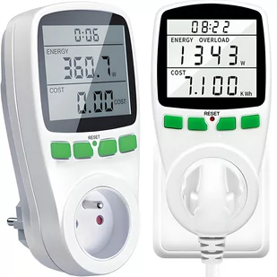 W tym celu należy przytrzymać przez ok 10 sekund zielony przycisk RESET znajdujący się na obudowie tuż pod wyświetlaczem. ✅FUNKCJE Wyświetlanie napięcia sieci Wyświetlanie poboru prądu Wyświetlanie aktualnego obciążenia gniazdka (moc urządzenia w watach) Wyświetla i zapisuje sumę zużytej energii elektrycznej Wyświetla i zapisuje całkowity czas włączenia oraz opłaty za energię (po zdefiniowaniu stawki) Wyświetla częstotliwość sieci elektrycznej, współczynnik mocy ✅ŁATWY W OBSŁUDZE Urządzenie posiada duży czytelny wyświetlacz oraz 4 przyciski. Miernik poboru prądu pozwala na bieżąco kontrolować poziom zużycia energii podpiętego do niego urządzenia. Na ekranie tego precyzyjnego urządzenia można wyświetlić wiele parametrów, w tym między innymi łączny czas pomiaru, aktualne napięcie, częstotliwość, pobór prądu, współczynnik mocy itp. ✅EKRAN LCD Posiada wymiary 50 x 55 mm Wskazuje przejrzysty oraz czytelny pomiar Ekran jest widoczny nawet z dużej odległości Pod ekranem znajdują się 4 duże przyciski, którymi w łatwy sposób obsłużą urządzenie ✅ZMNIEJSZY TWOJE RACHUNKI Watomierz to urządzenie, które zmniejszy twoje rachunki za prąd.