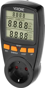 Jednotaryfowy watomierz, kalkulator energii z wyświetlaczem LCD, jedna taryfa, wbudowany akumulator, wersja Schuko, czarny