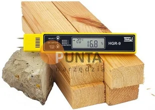 Wilgotnościomierz HGR-9 Tanel Opis przedmiotu: Miernik wilgotności HGR-9 jest tanim, uniwersalnym, nowoczesnym, elektronicznym przyrządem do pomiaru wilgotności drewna i betonu. Jest szczególnie przydatny przy kładzeniu parkietów i podłóg drewnianych. Mimo małych rozmiarów miernik zapewnia bardzo dobrą dokładność pomiarów. Osiągnięto to dzięki wykorzystaniu specjalistycznego mikroprocesora. Obsługa przyrządu jest bardzo przyjazna użytkownikowi. Pomiar wilgotności drewna uwzględnia gatunek i temperaturę drewna. Pomiar wykonujemy dotykając wskaźnikiem do dwóch uprzednio wbitych gwoździ.