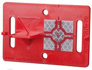 Tarcza celownicza czerwona 90 x 60 mm, z folią dalmierczą o wymiarach 30 x 30 mm. Przy użyciu nowoczesnych tachimetrów, punkt na folii może być namierzany z odległości nawet 80 m (zależnie od używanego sprzętu).