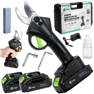 Zestaw zawiera WSZYSTKO, czego potrzebujesz do natychmiastowej pracy: 1x Sekator Akumulatorowy ISAJ KS12x Akumulator 21V Li-Ion1x Walizka Transportowa1x Ładowarka sieciowa1x Klucz imbusowy i nasadowy1x Olejarka z olejem1x Instrukcja po PolskuTERAZ W GRATISIE DODATKOWO: +1x Osełka do ostrzenia Ostrzy