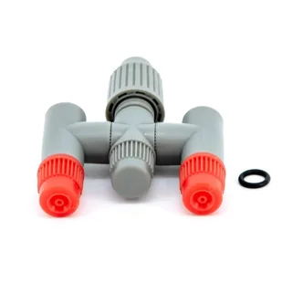 Podwójna dysza natryskowa oprysiwacza, do maksymalizacji oprysku roślin. Nadaje się do wszelkich upraw. Aby zamontować dyszę należy odkręcić nakrętkę końcówki lancy i wyjąć dotychczasową dyszę zastępując ją podwójną dyszą natryskową.