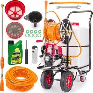 Opryskiwacz SPALINOWY Wózkowy Taczkowy 60L 28m Sadowniczy 4-SUW Olej