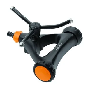 Zraszacz dookólny metalowy na kółkach Fiskars 1023657Pozwala na delikatne, równomierne nawadnianie małych ogródków. Strumień wody przypomina naturalnie padający deszcz. Głowica została wykonana z trwałego metalu. Dodatkowo metalowa trójnożna podstawa zwiększa stabilność, a kółka umożliwiają swobodne poruszanie się po ogrodzie. Regulowana średnica zraszanej powierzchni wynosi aż 13 m.
