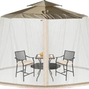 ——W pełni regulowana konstrukcja: moskitiera na parasol posiada regulowany sznurek u góry, dzięki czemu pasuje do większości parasoli ogrodowych lub altanek o średnicy od 2,43 m do 3 m. Rozmiar można łatwo dostosować do wielkości parasola. (Uwaga: parasol, stojak, stół i krzesła pokazane na zdjęciach nie są dołączone do zestawu).