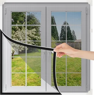 Moskitiera magnetyczna na okno, regulowana, 150 x 200 cm, biała rama z szarą moskitierą