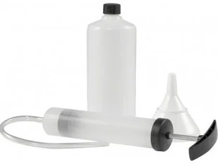 Praktyczny zestaw do odsysania oleju z kosiarek spalinowych. W skład zestawu wchodzi: odsysarka 300 ml, lejek oraz pojemnik na olej.