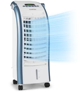 Dwa wymienne wkłady chłodzące do zbiornika na wodę mogą również obniżyć temperaturę, aby w razie potrzeby zwiększyć odczucie rześkości. Zbiornik na wodę można całkowicie wyjąć, aby ułatwić napełnianie, czyszczenie i opróżnianie. Przy poborze mocy zaledwie 55 W, Maxfresh Ocean jest przyjazną dla środowiska alternatywą dla klimatyzacji, zwłaszcza w trybie ciągłej pracy. Nieskończenie orzeźwiający dzięki rozkładanym uchwytom i zintegrowanym rolkom na spodzie schładzacz powietrza Klarstein Maxfresh Ocean jest całkowicie mobilny, wykonując swe zadania tam, gdzie ć chłodną bryzę.