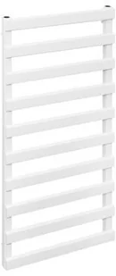 Nowoczesnej budowy grzejnik łazienkowy. Zbudowany z poziomych paneli w kształcie trapezu, które w połączeniu w kwadratowymi kolektorami pionowymi tworzą niesamowity efekt wizualny. Konstrukcja na wzór drabiny idealnie wpasuje się zarówno w nowoczesną jak i stylową łazienkę. Dodatkowego efektu dodaje kolor grafit strukturalny z drobinkami srebra.