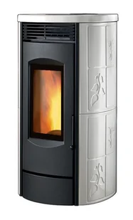 Alpina NES 10 EVO to zaokrąglona obudowa z korpusem wykonanym z lakierowanej stali. Niezwykłego charakteru dodają fragmenty ceramiczne, zarówno górna pokrywa, jak i boczne części wykonane są z włoskiej majoliki. Uwagę przyciągają także tłoczone na płytkach zdobienia w kształcie liści. Każdy model posiada żeliwne, czarne drzwi.