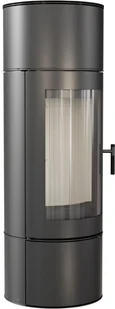 Przestronne przeszklenie uatrakcyjnia wizję ognia. Wnętrze pieca wyłożone innowacyjnym materiałem Acumotte doskonale kontrastuje z bryłą, nadając całości nowoczesnego wyglądu.