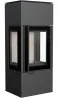 Trójstronne przeszklenie uatrakcyjnia wizję ognia, a dodatkowa ozdobna szyba typu glass podkreśla jego urok. Wnętrze pieca wyłożone Acumotte doskonale kontrastuje z bryłą, nadając całości nowoczesnego wyglądu.