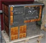 PIEC KUCHENNY KAFLOWY PRZENOĹNY KRW 1 Kuchnia produkcji polskiej , przeznaczona do gotowania, pieczenia i ogrzewania . Konstrukcja pieca wykonana jest ze profili chromoniklowych ,wnÄtrze wymurowane z cegĹy szamotowej na zaprawie szamotowej, co pozwala na oddawanie ciepĹa jeszcze dĹugo po wygaĹniÄciu paleniska. Dane techniczne: