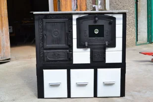 Wymiary paleniska - wysokoĹÄ 25 cm - szerokoĹÄ 22 cm - gĹÄbokoĹÄ 38 cm Wymiary piekarnika - wysokoĹÄ 23 cm - szerokoĹÄ 30 cm - gĹÄbokoĹÄ 46 cm - waga pieca ok.230 kg - Ĺrednica wylotu spalin 130mm - wylot spalin moĹźe znajdowaÄ siÄ z tyĹu, boku, na pĹycie grzewczej - wersja wykonania lewa bÄ dĹş prawa Opcja dodatkowa : FAJERKI nad paleniskiem Podana cena dotyczy wykonania kuchni z wymiennikiem dla c.o. z moĹźliwoĹciÄ ogrzewania do 75 m2 powierzchni mieszkalnej o standardowej wysokoĹci i izolacyjnoĹci cieplnej. Wersja podstawowa (bez wymiennika) kosztuje o 600 zĹ. brutto mniej - 3800,00 zĹ. Kuchnie dostÄpne tylko na zamówienie w okresie ok 10-28 dni od dnia zĹoĹźenia zamówienia. Gwarancja producenta 12 miesiÄcy.