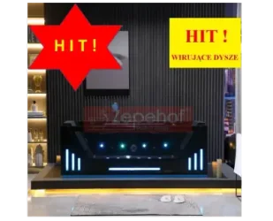 nogi regulowane usytuowane na stelażu kompletne chowane automatycznie futurystyczne baterie z przełącznikami funkcyjnymi korek spustowy z mechanizmem przelewowym funkcja wodospadu z dwóch stron na ścianie i poręczy wygodne 2 miękkie oparcia zakrywający dysze, dysze nie uwierają w plecy przewód odprowadzający wodę z syfonem podświetlany panel sterowania funkcjami – elektroniczny dotykowy z bluetooth pilot zdalnego sterowania funkcjami wanny wężyki o stalowym splocie do przyłączeń wodnych wtyczka z przewodem elektrycznym 230V W naszym sklepie otrzymają Państwo GRATIS do każdej zakupionej wanny z hydromasażem, wszystkie niezbędne akcesoria do podłączenia wanny [prąd, woda, odpływ]: wąż odpływowy z mini syfonem ok. 1,2 m, wężyki 2szt do przyłączy wody nakrętka 1/2” oraz kabel prądowy ok 1m z bezpiecznikiem różnicowym typu click’clack. Materiał wykonania: Akryl sanitarny czterowarstwowy czarny o grubości od 3mm-4.