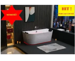 Taki rodzaj wirujących dysz zapewnia sprawniejsze i skuteczniejsze łagodzenie wszelkich dolegliwości i bólu, w tym bólów reumatycznych czy pozazabiegowych. Moc masaży to prawdziwy sztorm na morzu. Zadowolenie z biczy wodnych gwarantowane [zobacz film prezentujący moc masaży]. Bryła akrylowa wanny wykonana jest z jednej całości, przez co kształt jest bardzo smukły oraz elegancki. Wanna z hydromasażem wodnym LED, i powietrznym – water effect LED w sumie 42 mocnych dysz do masaży.