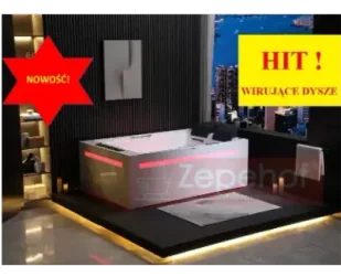 Wanna z hydromasażem wodnym LED i powietrznym – water effect LED 49 mocnych dysz do masaży. Okna LEDowe !!! Pasek LED Ambiente w dolnej części wanny doświetlający podłogę. Aktywne 2 wodospady LED z dwóch stron [efekt Wow] Nowatorskie okna LEDOWE zewnętrzne. Wanna wyposażona dodatkowo w ledowe masażery karku na każde stanowisko. Wanna zaprojektowana w ten sposób, iż zapewnia przestrzeń i czystą formę.
