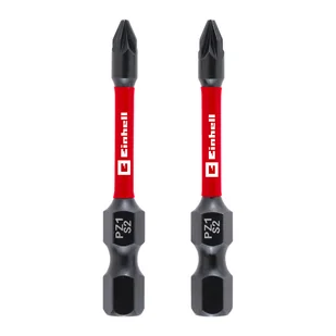 Bity udarowe Einhell o profilu PZ1 i długości 50 mm wykonane są z wyjątkowo twardej, odpornej na uderzenia stali S2 fosforanowanej manganowo i posiadają czerwony pierścień z logo Einhell. Z uwagi na swoją wyjątkową trwałość, efektywne przenoszenie mocy i wysoką nośność, idealnie nadają się do ambitnych projektów. Bity udarowe posiadają również strefę skrętną, która skutecznie pochłania siły i wibracje występujące podczas wkręcania, zapewniając wysoką nośność. Dzięki trzpieniowi C 6,3 o średnicy 1/4 cala, bity udarowe Einhell pasują do wszystkich popularnych uchwytów wiertarskich i bitów w standardowych (udarowych) wkrętarkach akumulatorowych i wiertarkach.