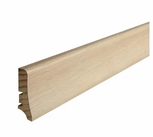 Proponowana listwa łączy w sobie zarówno funkcje ozdobne jak i praktyczne. Doskonale nadaje się do maskowania nierówności ściany i podłogi. Skutecznie zasłania styki parkietu ze ścianami jednocześnie chroniąc je przez zabrudzeniami i uszkodzeniami. Wykonana z naturalnego drewna lakierowanego w kolorze dębu białego nada każdemu wnętrzu subtelnego klasycznego charakteru.