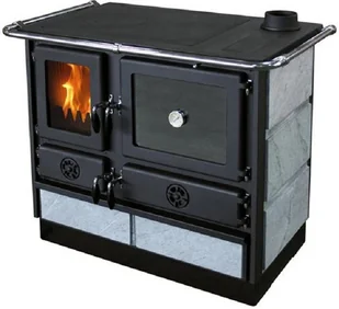 MBS Magnum, żeliwna kuchnia na paliwa stałe z okładziną z kamienia naturalnego. Kuchnia węglowa żeliwna MBS Magnum, to wspaniała propozycja dla klientów ceniących trwałość i estetykę wykonania. Paliwem zalecanym dla tej kuchni jest drewno liściaste i brykiety drzewne, a związane to jest głównie z wbudowanym szkłem w drzwiczkach paleniska, które poszerza funkcję kuchni do kominka. Przeznaczona jest do zamontowania w pomieszczeniach kuchennych, umożliwia gotowanie i pieczenie potraw ogrzewając przy tym powierzchnię do 70 m$608 (dane producenta )