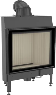 Uzyskana w ten sposób energia cieplna z drewna zostaje maksymalnie wykorzystana. Ograniczenie osadzanie sadzy dzięki systemowi czystej szyby (kierownica powietrza). Możliwość zastosowania w różnych warunkach montażowych, dzięki regulowanym nóżkom i ruchomemu wylotowi spalin z regulacją ustawienia 360 . Możliwość przełożenia drzwi ze standardowego lewostronnego otwarcia na prawostronne. NOWOCZESNY DESIGN Dekoracyjna szyba typu glass wytrzymująca temperaturę do 660 C, która nadaje kominkowi nowoczesny i elegancki wygląd, optycznie powiększa front wkładu.